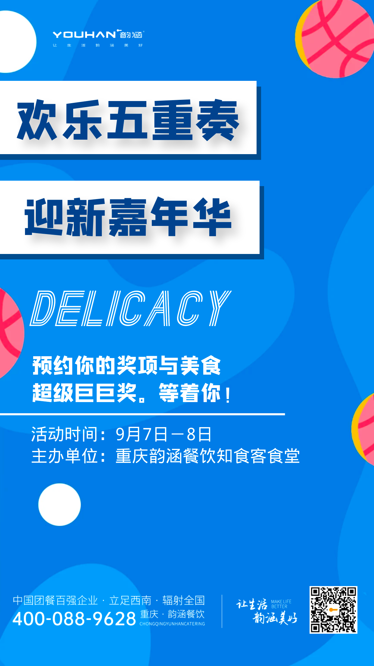 重慶韻涵餐飲文化有限公司成立于2011年,是金科智慧服務(wù)集團(tuán)股份有限公司旗下專業(yè)團(tuán)膳業(yè)務(wù)的服務(wù)型企業(yè)。以駐場管理服務(wù)、供應(yīng)鏈管理、品牌孵化運(yùn)營三大服務(wù)體系為核心,致力于為院校、政企單位、醫(yī)養(yǎng)機(jī)構(gòu)、工業(yè)及產(chǎn)業(yè)園區(qū),提供食堂經(jīng)營托管、人員勞務(wù)輸出、食材供應(yīng)、食堂空間設(shè)計(jì)裝修等全流程、全方位、全生命周期優(yōu)質(zhì)團(tuán)膳服務(wù)。